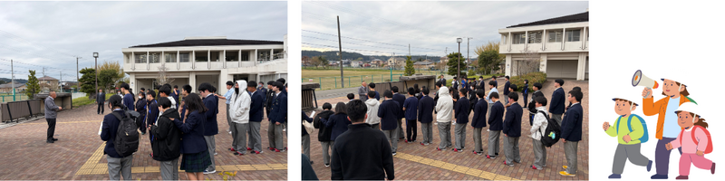 災害はいつ、どのタイミングで起こるかわかりません。今回の出来事をとおして、日頃からの「備え」と「訓練」がいかに大切であるかを、教職員・生徒一同改めて強く実感することとなりました。全員の無事が速やかに確認できたことに安堵するとともに、訓練通りに冷静に行動できた生徒たちを大変頼もしく思います。今後も生徒の安全を第一に考え、防災意識の向上に努めてまいります。